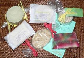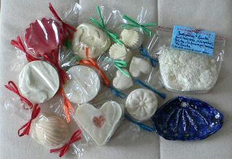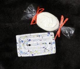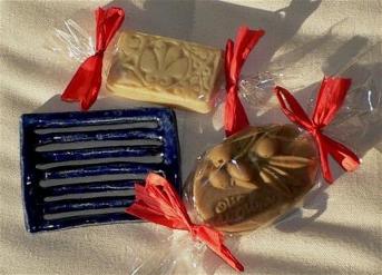 Sie bekommt von mir verschiedene Seifen und Badesachen und eine Seifenschale aus Ton