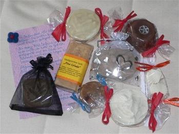 Für die tollen gestrickten Socken bekam sie diese Seifen.