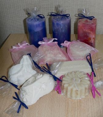 Für ein Tuch bekommt sie die Kerzen und Seifen geschickt ( Chai, Frühling, häßliches Entchen, Seine Sole, Sensible Sole, Kräuter, Provence)