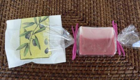 Für ein Lichtsäckchen bekommt sie die Seifen "pink Aprikose" und "häßliches Entchen"
