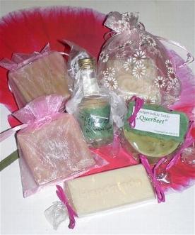 Sie hat sich Seifen ( Querbeet, Chai, Kräuter, Frühling, Fruchtmus) von mir gewünscht und bekommt dazu noch eine Liquörprobe.