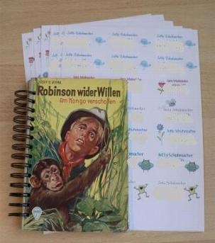 Ich bekam von ihr aus einem alten Jugendbuch von meinem Vater ein Ringbuch gemacht und noch viele schöne Adressaufkleber.