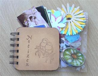 Ich bekam ein Notizbüchlein und Pillendöschen und Papieriges als Extra